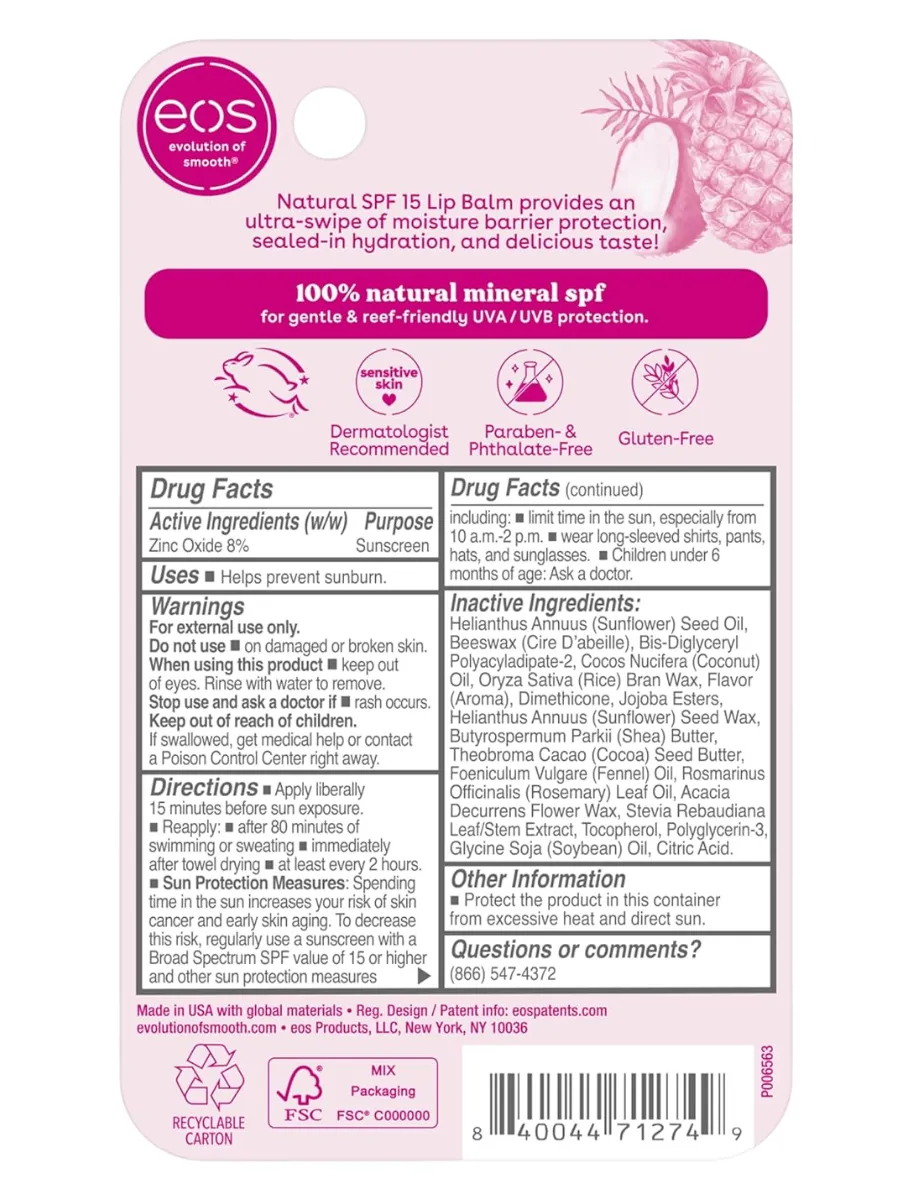 О компании EOS: С 2006 года EOS производит безопасные средства для ухода за кожей. Продукты тестируются дерматологами и созданы с заботой о природе. EOS – выбор звезд и лидер рынка ухода за губами в США.