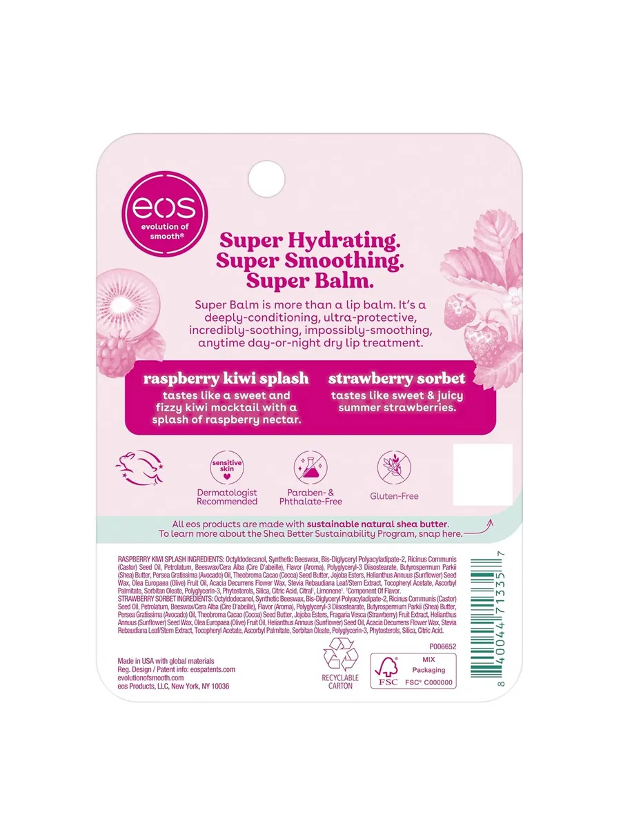 О компании EOS: С 2006 года EOS производит безопасные средства для ухода за кожей. Продукты тестируются дерматологами и созданы с заботой о природе. EOS – выбор звезд и лидер рынка ухода за губами в США.