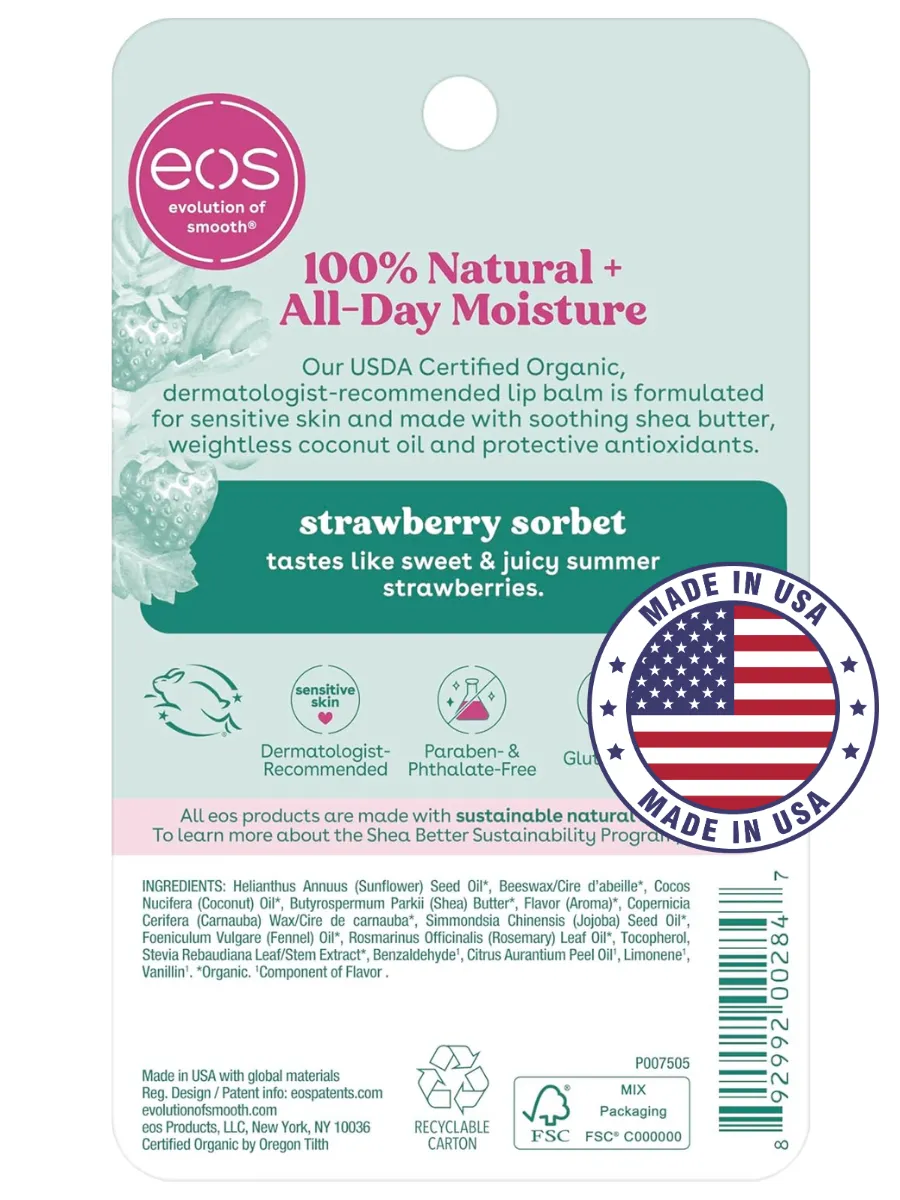 О компании EOS: С 2006 года EOS производит безопасные средства для ухода за кожей. Продукты тестируются дерматологами и созданы с заботой о природе. EOS – выбор звезд и лидер рынка ухода за губами в США.