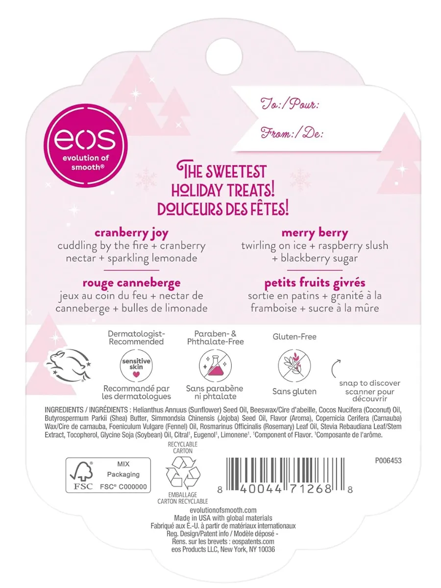 О компании EOS: С 2006 года EOS производит безопасные средства для ухода за кожей. Продукты тестируются дерматологами и созданы с заботой о природе. EOS – выбор звезд и лидер рынка ухода за губами в США.