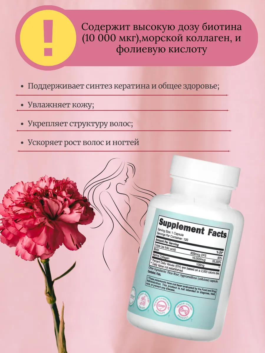 10 000 мкг биотина для здоровья волос, кожи и ногтей