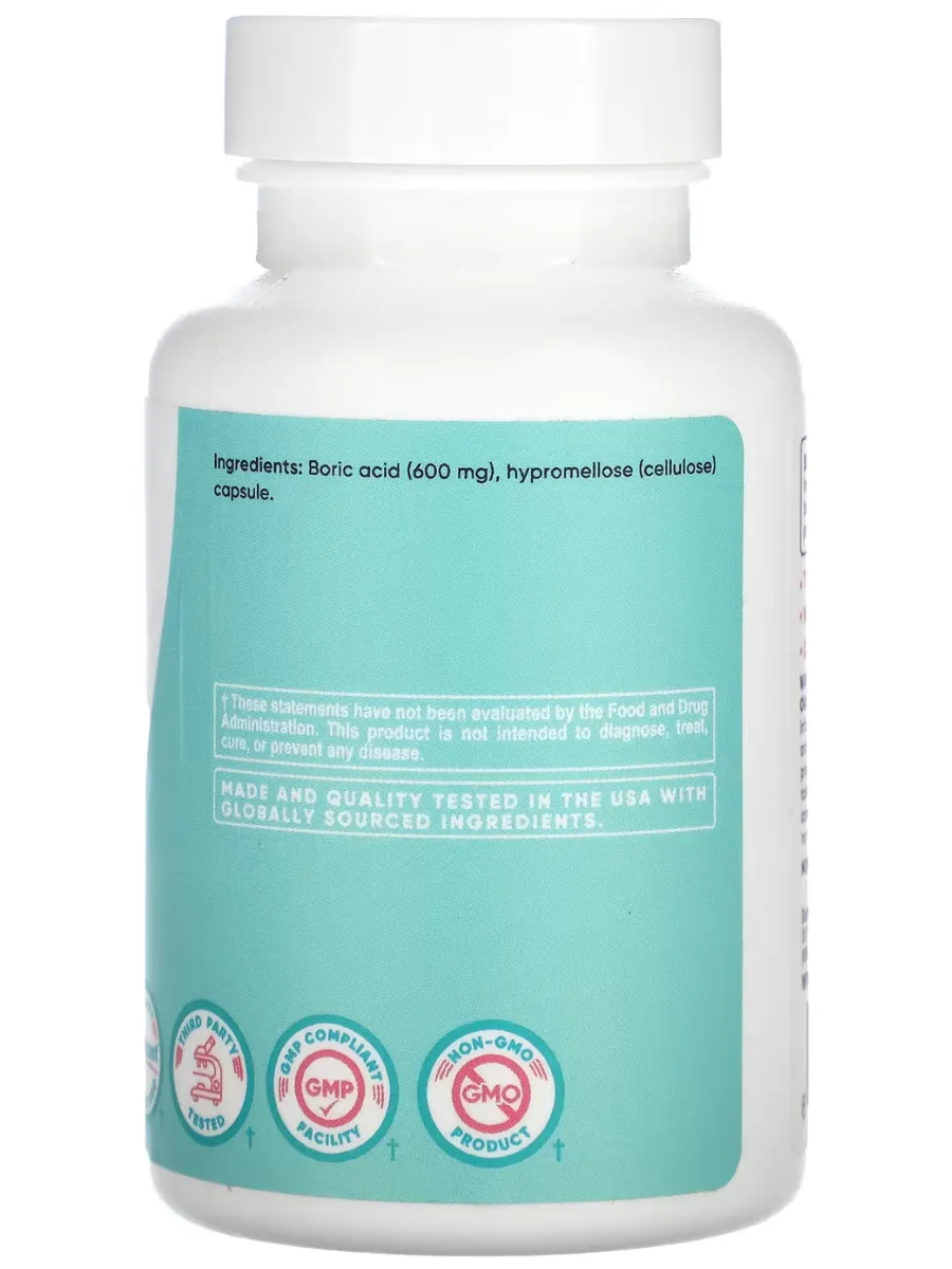 Nutricost Борная кислота — это натуральное средство для поддержания вагинального здоровья и баланса pH. Борная кислота известна своими антисептическими и противогрибковыми свойствами, помогая бороться с дискомфортом, неприятным запахом и дисбалансом микрофлоры.