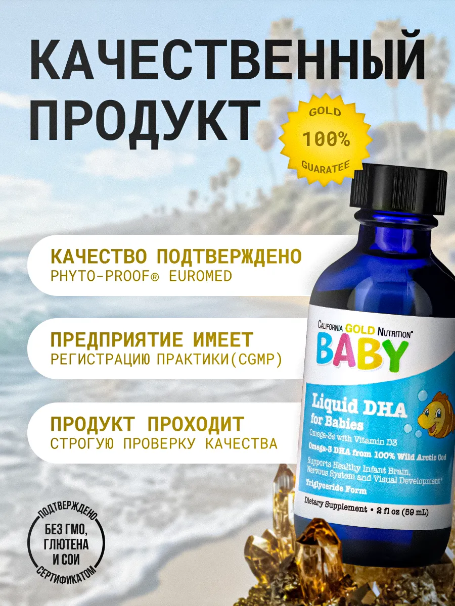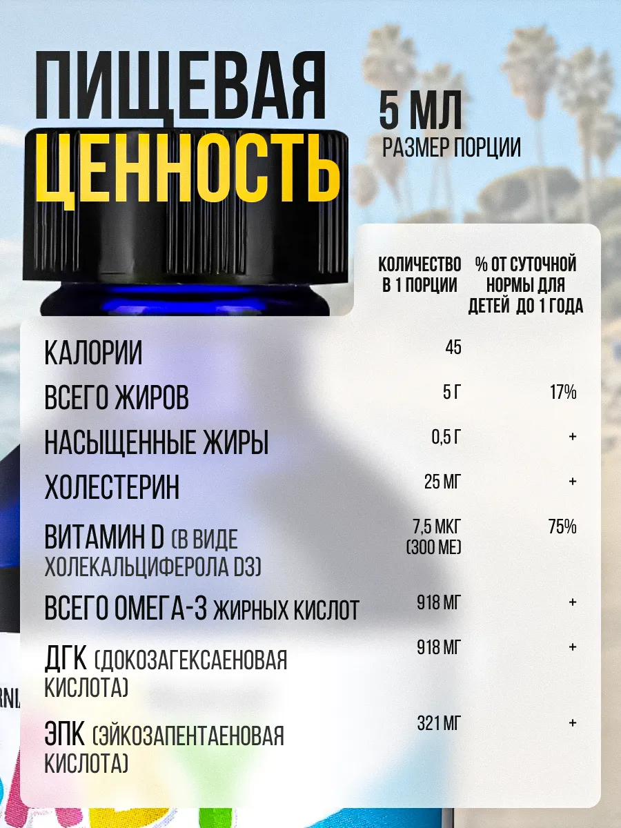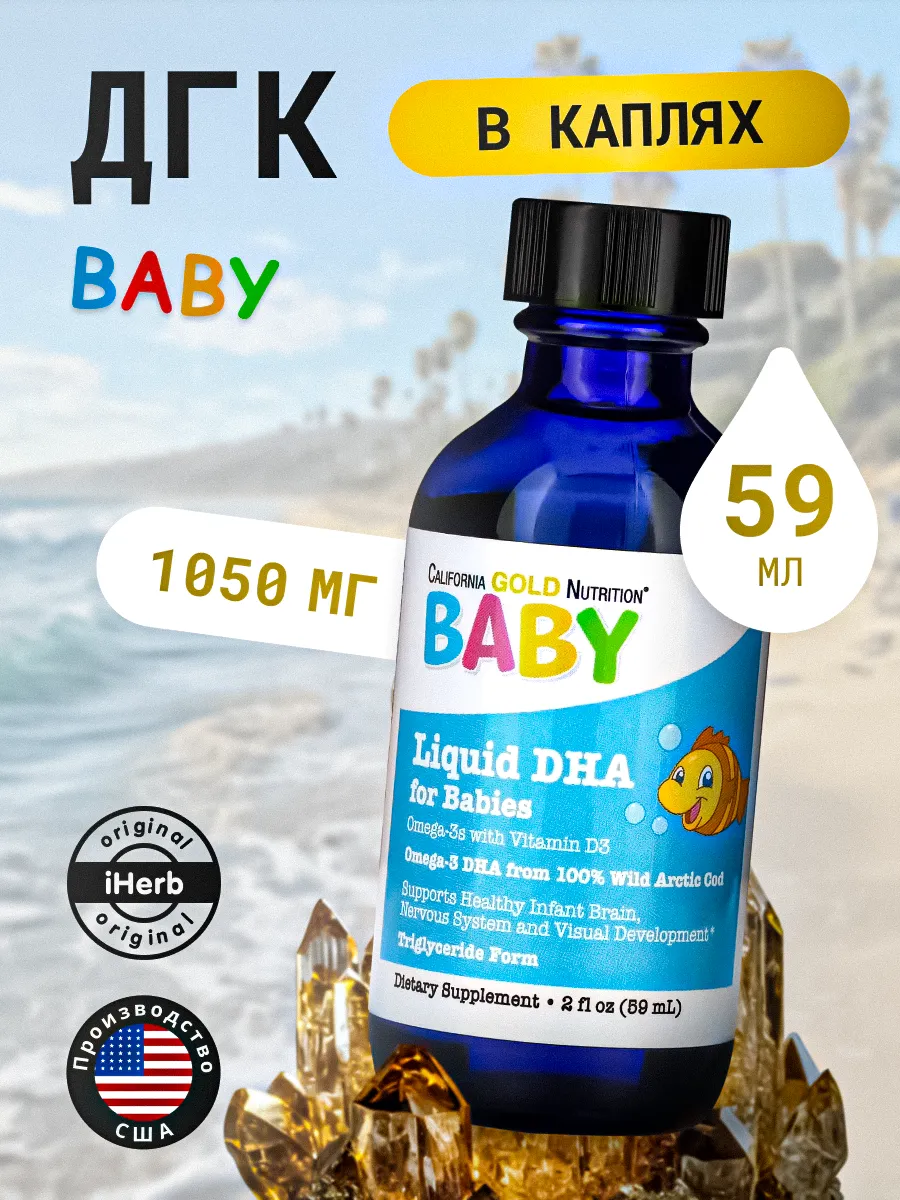 California Gold Nutrition ДГК для детей — это высококачественная жидкая добавка на основе омега-3 жирных кислот с добавлением витамина D3, специально разработанная для поддержки развития мозга, зрения, иммунной системы и костей у детей. Приятный вкус облегчает ежедневный приём.