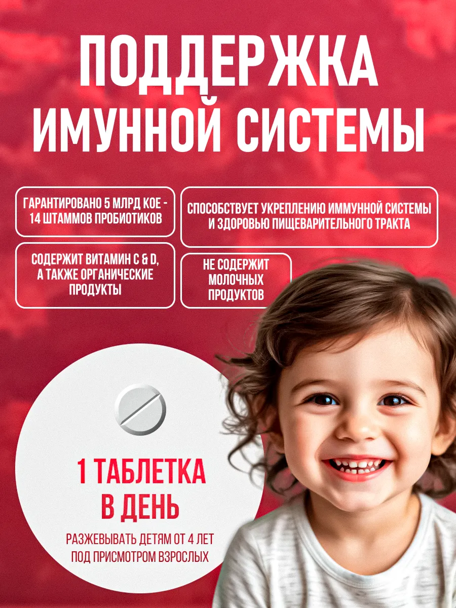 5 миллиардов КОЕ и 14 штаммов пробиотиков для поддержки пищеварения и иммунитета