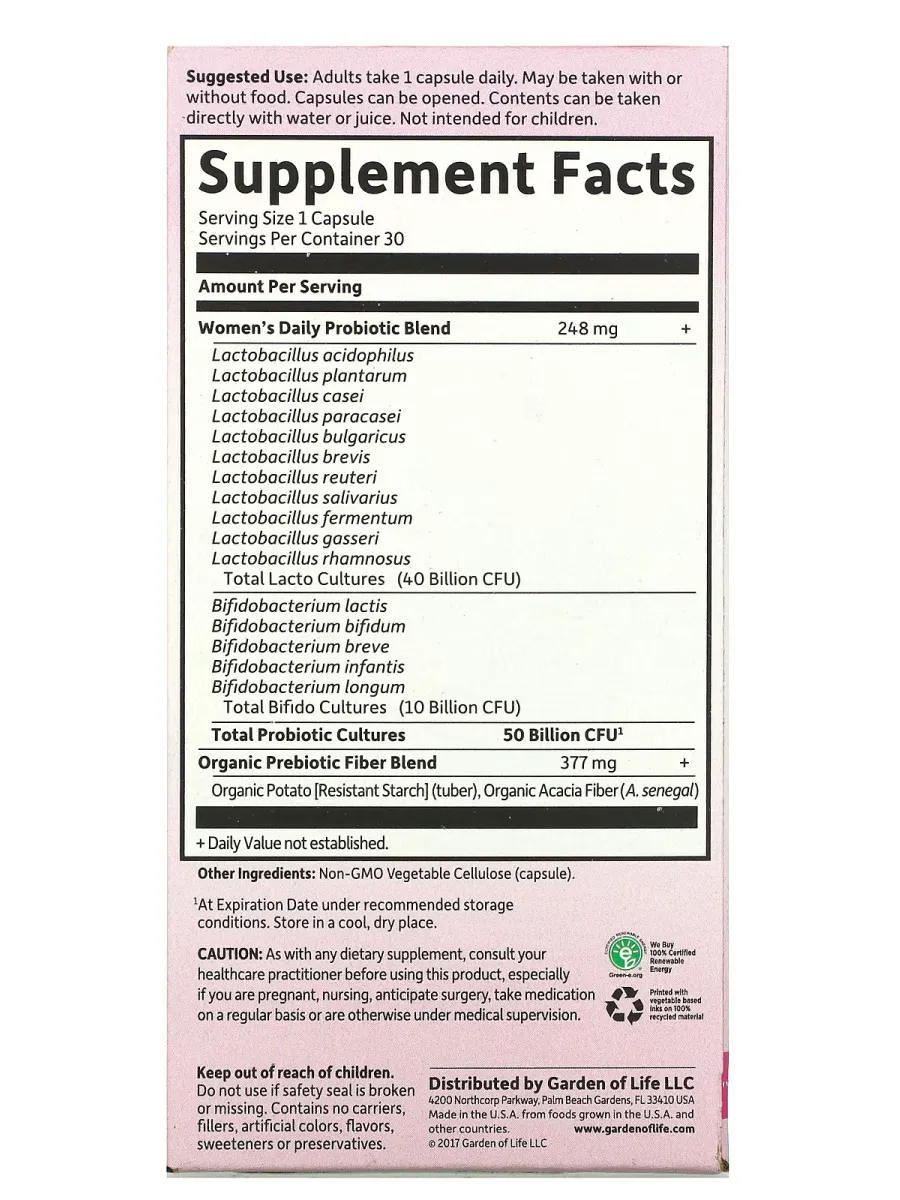 Основные преимущества Garden of Life Dr. Formulated Probiotics для женщин: