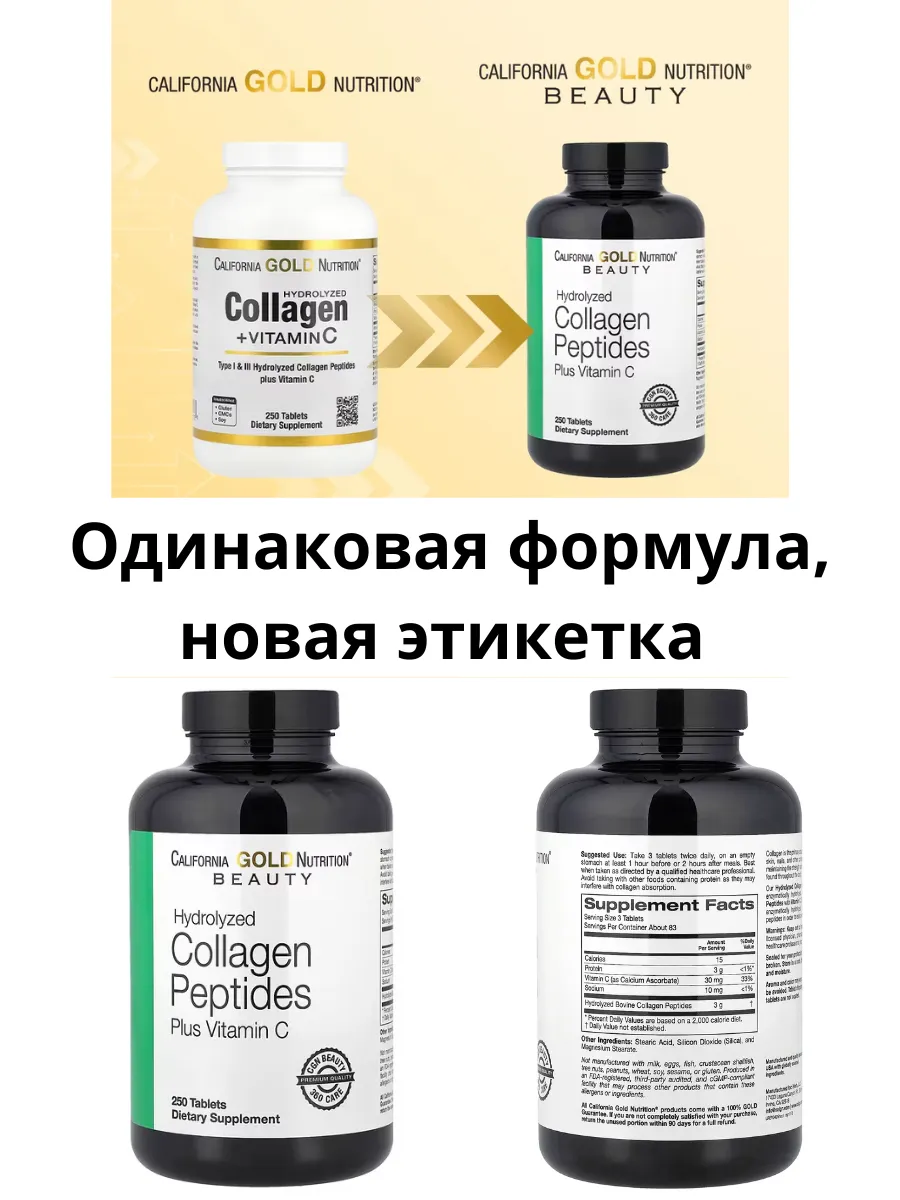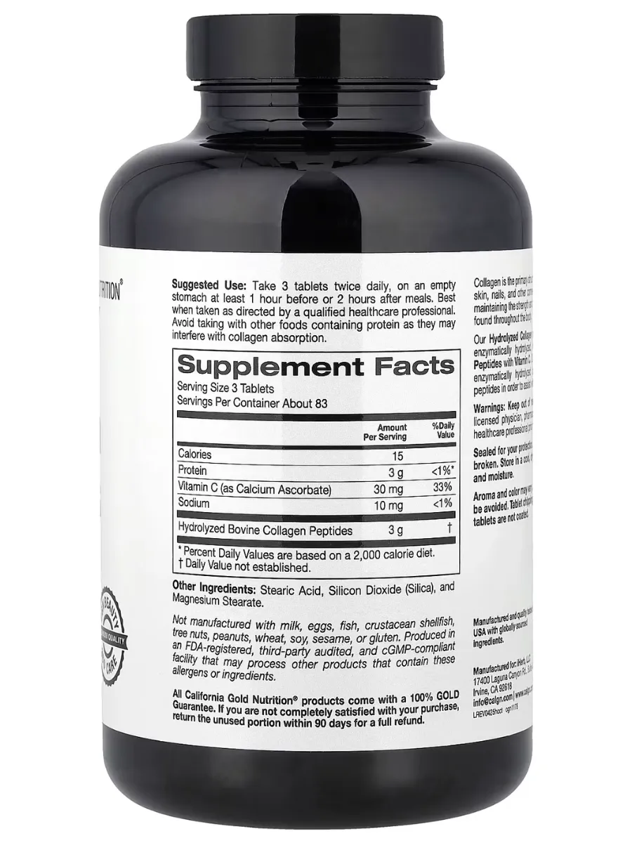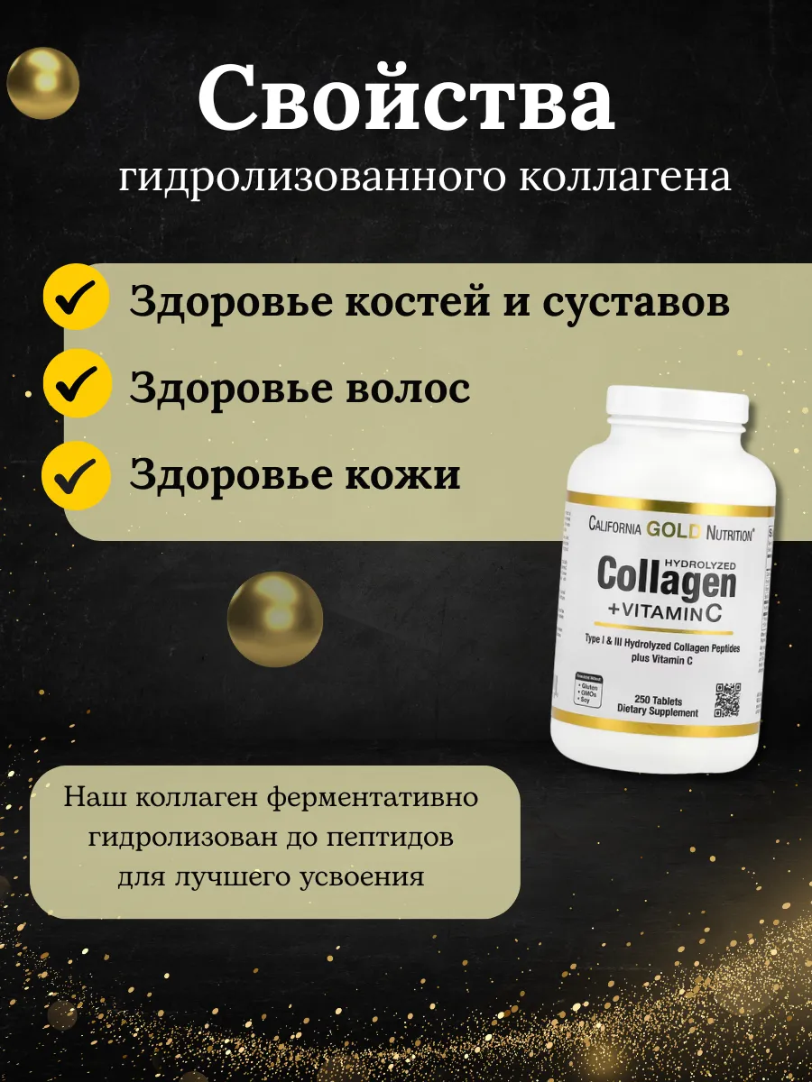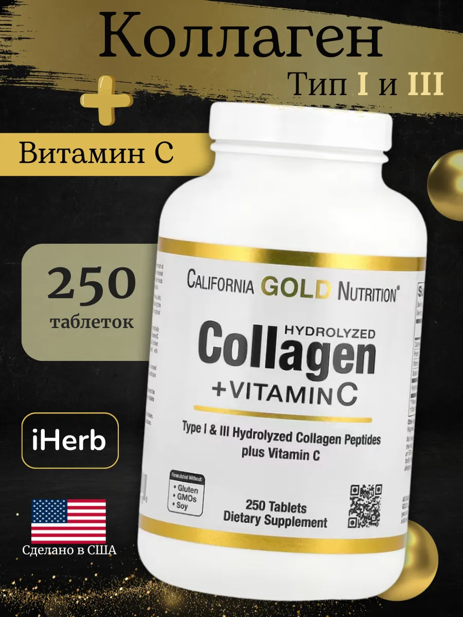 California Gold Nutrition Пептиды Коллагена с Витамином C — это формула для поддержки здоровья кожи, волос, ногтей, суставов и костей. Коллаген типов I и III способствует укреплению соединительных тканей, а витамин C усиливает синтез собственного коллагена и антиоксидантную защиту.