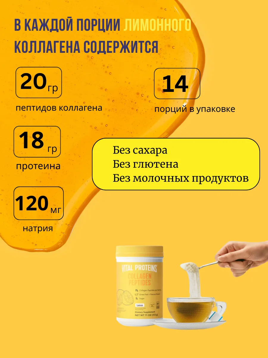 Основные преимущества Vital Proteins Коллагеновых пептидов с лимонным вкусом: