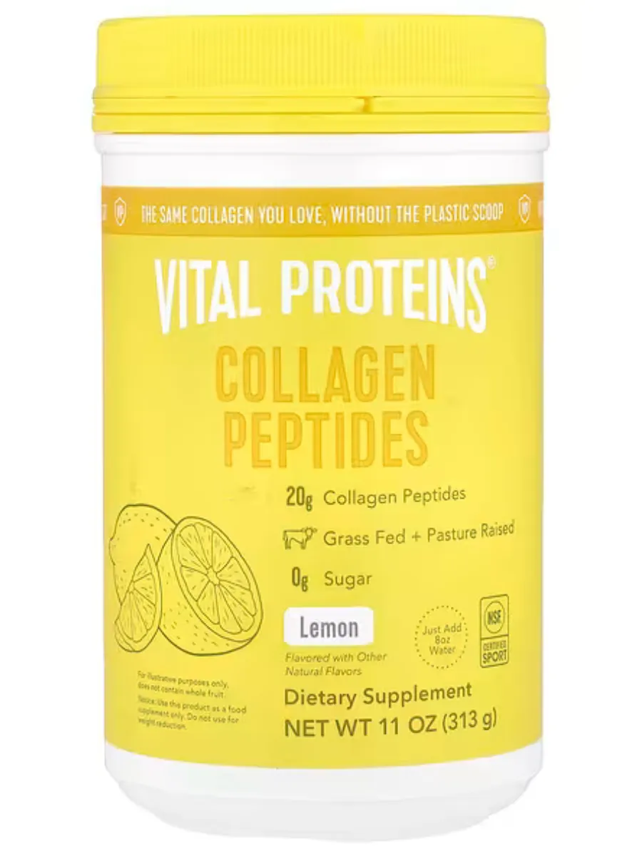Vital Proteins Коллагеновые пептиды с лимонным вкусом — это пищевая добавка, содержащая 10г коллагена из говядины в каждой порции. Продукт разработан для поддержки здоровья кожи, волос, ногтей, суставов и костей, предлагая при этом освежающий лимонный вкус.