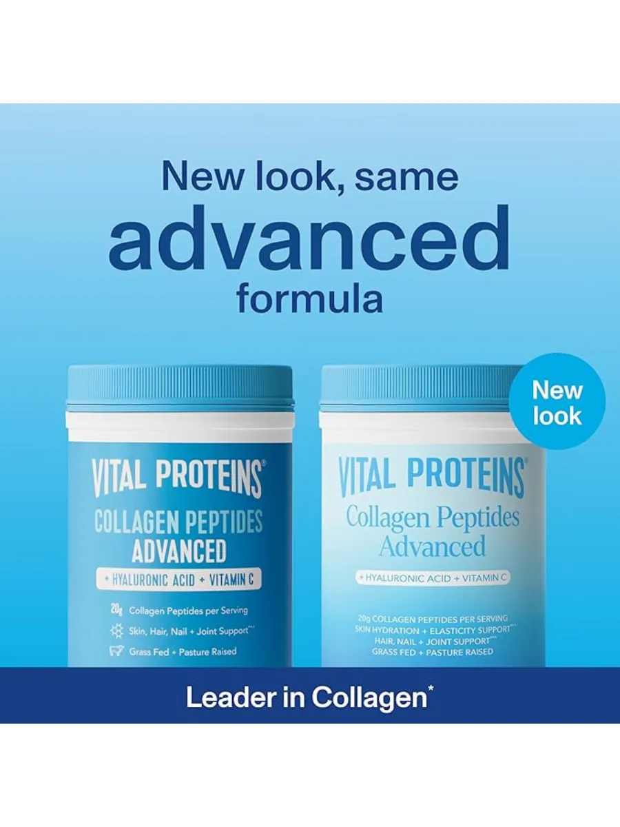 Collagen Peptides Advanced — это обновлённая формула от Vital Proteins с акцентом на здоровье кожи, суставов и общего тонуса организма. Содержит 20 г гидролизованного коллагена на порцию, обогащена гиалуроновой кислотой и витамином C, что делает её особенно эффективной для увлажнения и поддержания молодости кожи.