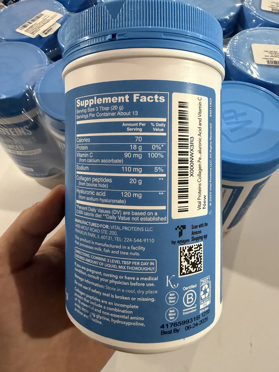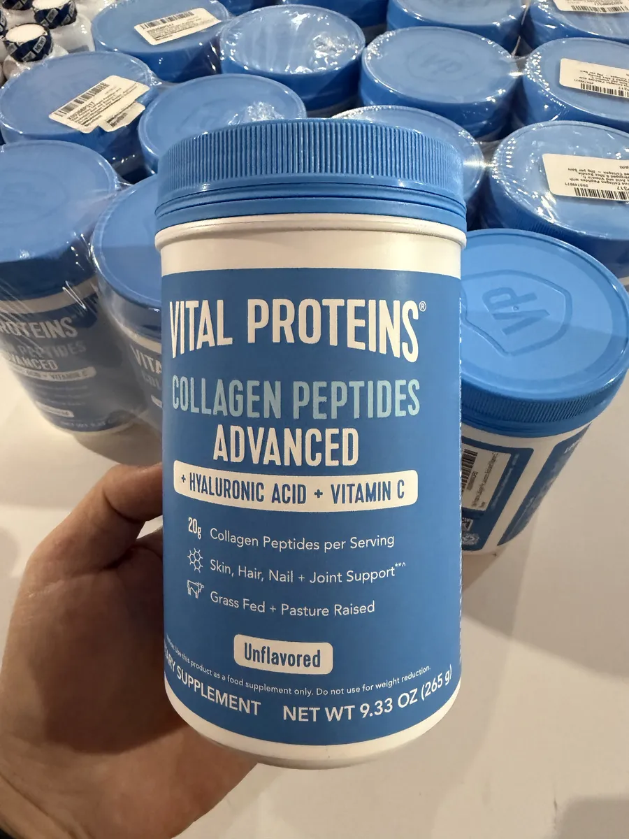 Collagen Peptides Advanced — это обновлённая формула от Vital Proteins с акцентом на здоровье кожи, суставов и общего тонуса организма. Содержит 20 г гидролизованного коллагена на порцию, обогащена гиалуроновой кислотой и витамином C, что делает её особенно эффективной для увлажнения и поддержания молодости кожи.