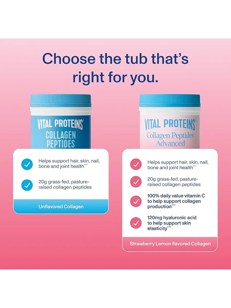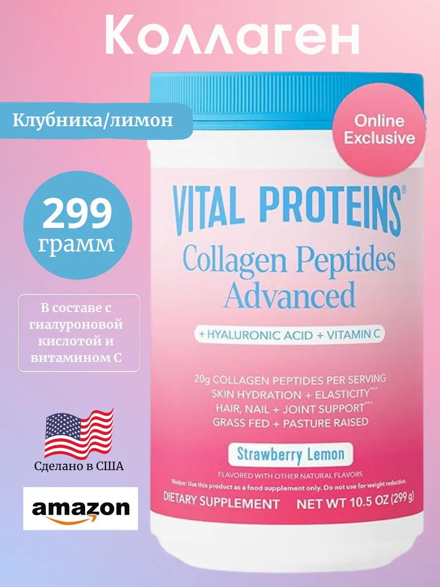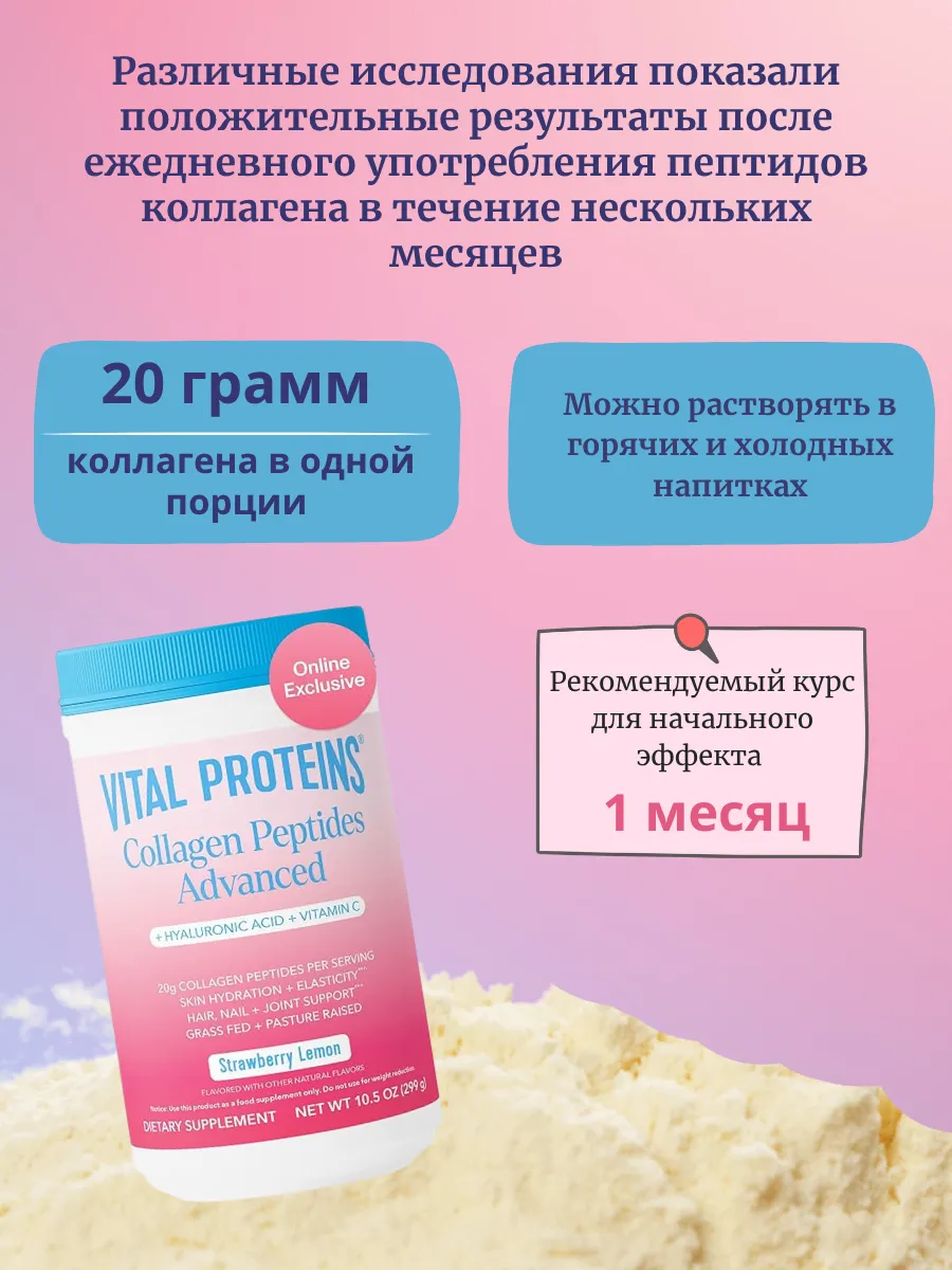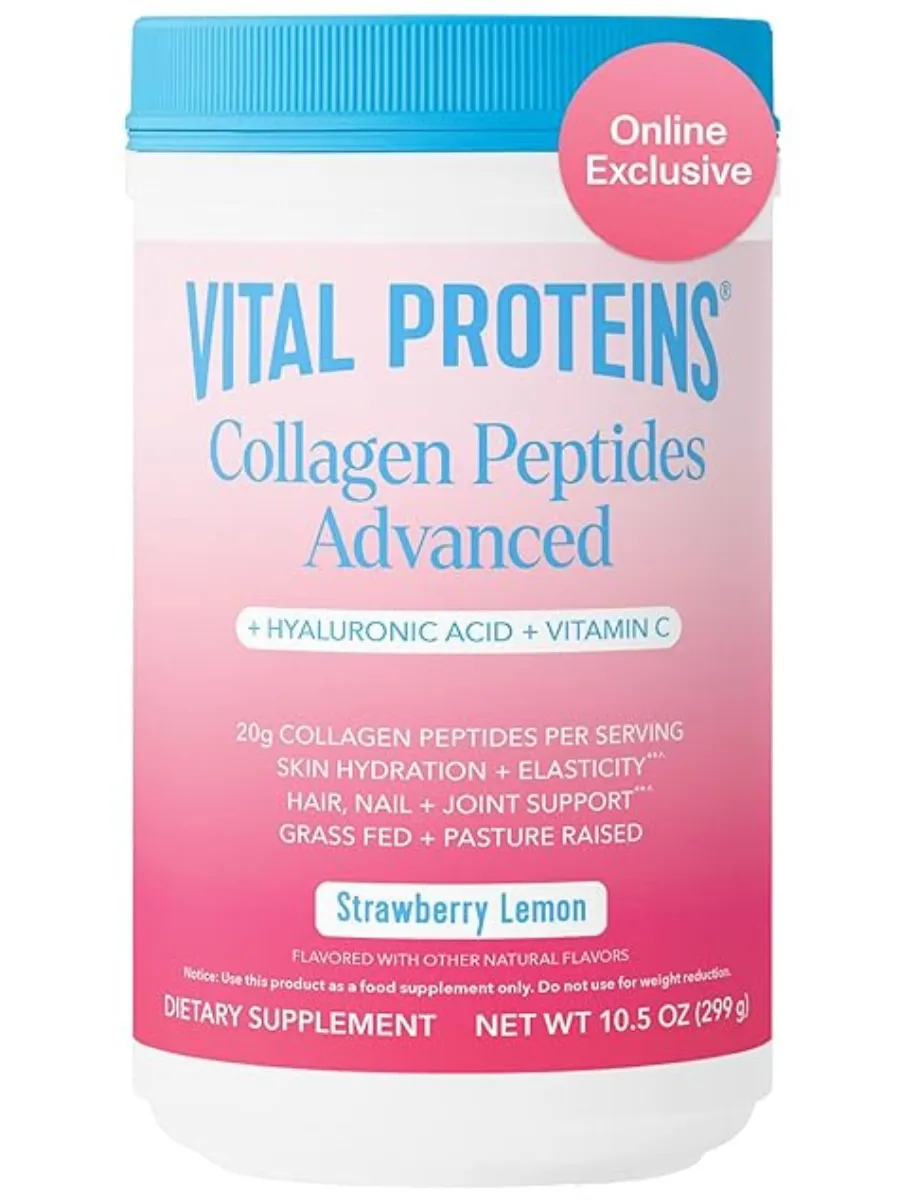 Vital Proteins, Collagen Peptides Advanced, гидролизованный коллаген с гиалуроновой кислотой и витамином C, клубнично-лимонный вкус, 299 г