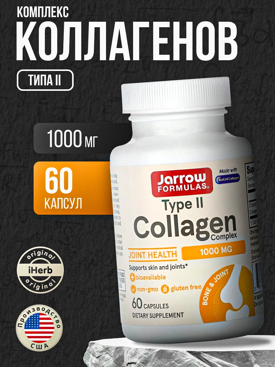 Jarrow Formulas Комплекс Коллагенов Типа II — это высококачественная добавка, специально разработанная для поддержки здоровья суставов, хрящей и кожи. Коллаген типа II является основным структурным белком суставных тканей, обеспечивающим их прочность, эластичность и амортизацию.