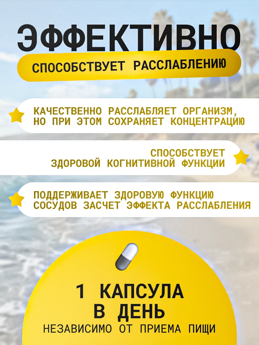 Снижение стресса и тревожности: Способствует расслаблению и эмоциональному балансу, не вызывая сонливости.