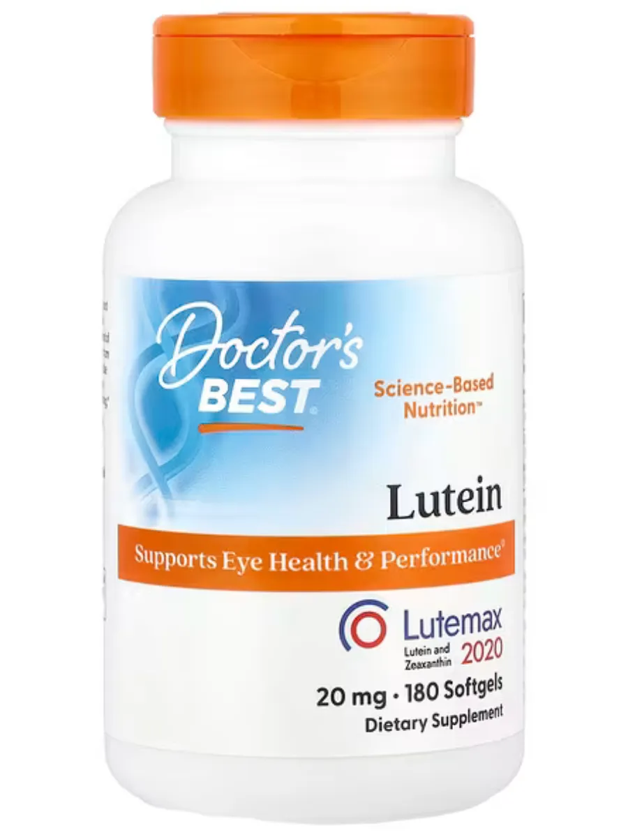 Doctor's Best Lutein with Lutemax 2020 — это комплекс для поддержки здоровья глаз и зрения. Каждая порция (1 мягкая капсула) содержит 20 мг лютеина и 4 мг зеаксантина в форме Lutemax 2020 (соотношение 5:1), полученных из натуральных источников цветков бархатцев. Формула помогает защитить сетчатку от вредного синего света, поддерживает остроту зрения, снижает усталость глаз и способствует здоровью макулы. Продукт разработан для ежедневного использования, особенно при работе за компьютером или длительном воздействии экранов. Не содержит ГМО, глютен, сою, искусственные красители или консерванты, подходит для вегетарианцев и сертифицирован по стандартам GMP.