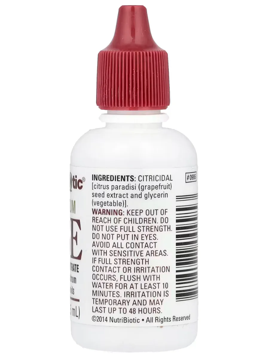 NutriBiotic Maximum GSE — это высококонцентрированный экстракт семян грейпфрута, предназначенный для наружного применения. Продукт содержит Citricidal — запатентованную формулу, состоящую из 60% экстракта семян и мякоти грейпфрута и 40% растительного глицерина. Благодаря высокому содержанию биоактивных флавоноидов, средство обладает мощными антимикробными свойствами и используется для гигиенического ухода за кожей и слизистыми оболочками.