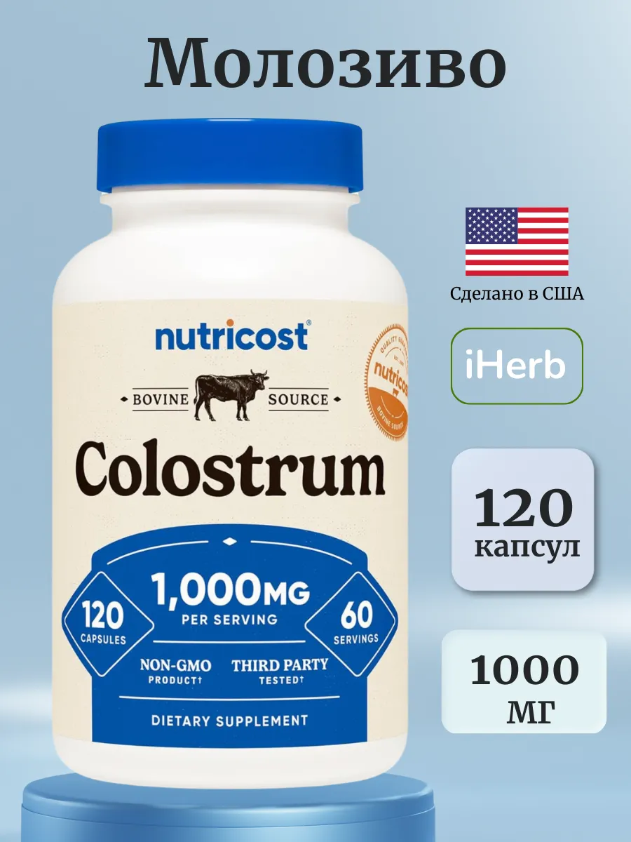 Nutricost Colostrum (молозиво) — это высокочистая добавка молозива из коровьего источника для поддержки иммунитета, пищеварения и общего здоровья. Каждая порция (2 капсулы) содержит 1000 мг молозива (500 мг в 1 капсуле), богатого иммуноглобулинами (IgG), лактоферрином, факторами роста и биологически активными соединениями. Продукт помогает укрепить иммунную систему, улучшить состояние слизистых оболочек кишечника, поддержать восстановление после тренировок и общее благополучие. Не содержит ГМО, произведён в сертифицированном GMP-объекте с независимым третьесторонним тестированием.
