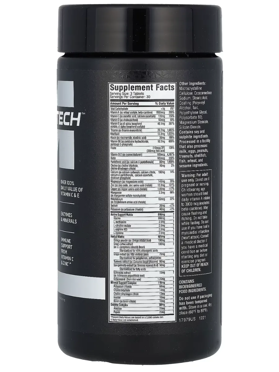 MuscleTech Platinum Multivitamin — это комплексная формула с более чем 20 витаминами, минералами и аминокислотами, разработанная для поддержки здоровья, энергии и восстановления организма. Этот мультивитаминный комплекс особенно подходит для спортсменов и людей с активным образом жизни.