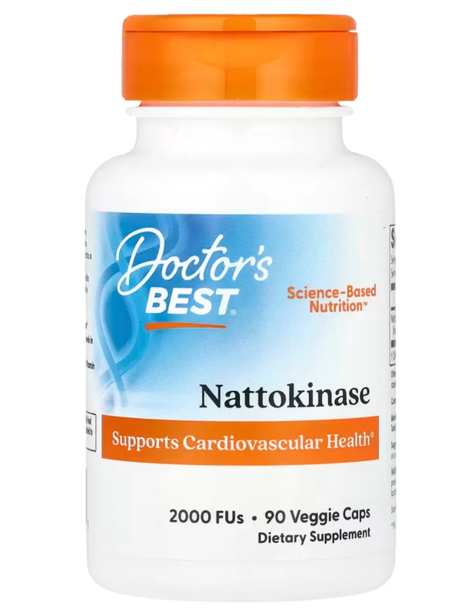 Doctor's Best Nattokinase — это ферментный комплекс для поддержки здоровья сердечно-сосудистой системы и нормального кровообращения. Каждая порция (1 капсула) содержит 2000 FU (фибринолитических единиц) наттокиназы, полученной из ферментированного соевого натто с использованием бактерий Bacillus subtilis, с удалённой витамином K2. Продукт помогает поддерживать нормальный уровень фибриногена в крови и способствует здоровому кровотоку. Не содержит ГМО, глютен, искусственные красители или консерванты, подходит для вегетарианцев и сертифицирован по стандартам GMP.