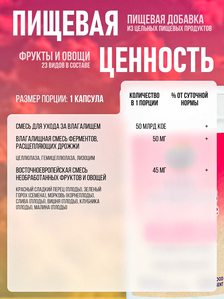 38 штаммов пробиотиков, включая 8 специально отобранных для здоровья влагалища