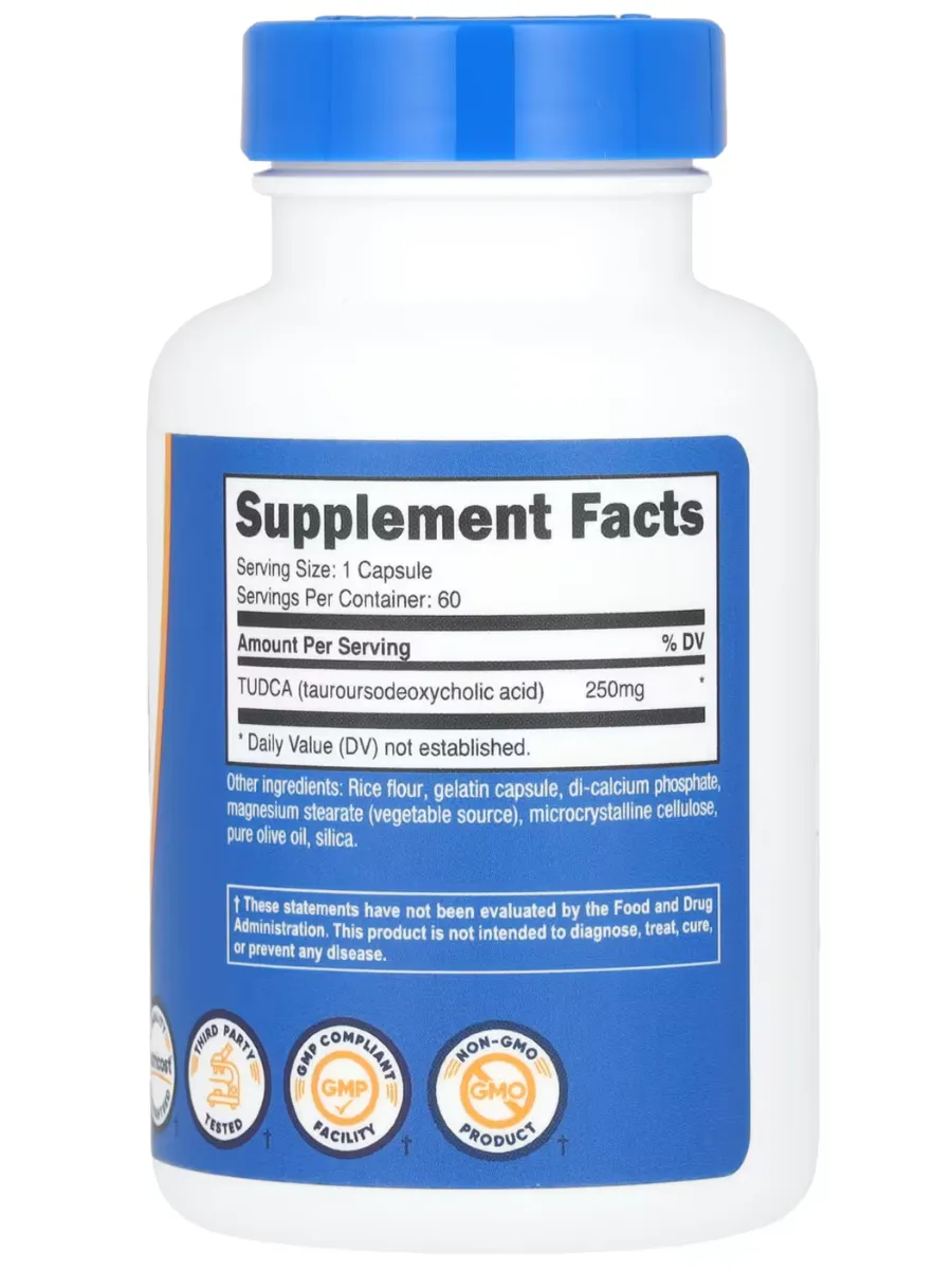 Nutricost TUDCA — это чистая добавка тауроурсодезоксихолевой кислоты для поддержки здоровья печени, желчного пузыря и пищеварения. Каждая порция (1 капсула) содержит 250 мг TUDCA — мощного желчного соединения, которое помогает защитить клетки печени, улучшить поток желчи, снизить воспаление и поддержать детоксикацию. Продукт особенно полезен при повышенной нагрузке на печень (алкоголь, жирная пища, медикаменты), после удаления желчного пузыря или в качестве поддержки при ПКТ (постциклной терапии). Не содержит ГМО, глютен, искусственные красители или консерванты, произведён в сертифицированном GMP-объекте с независимым тестированием.