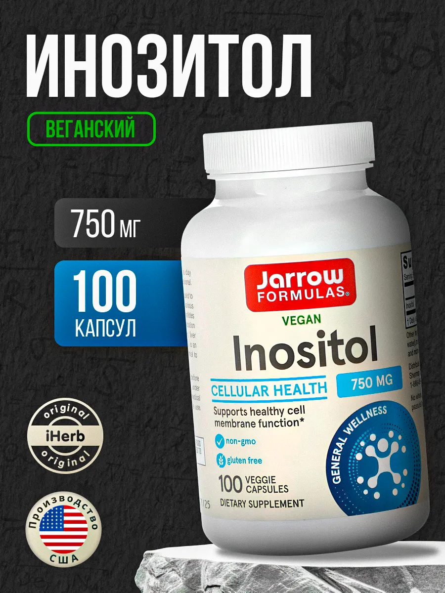 Jarrow Formulas Веганский Инозитол — это высококачественная добавка с инозитолом (витамин B8), которая поддерживает здоровье нервной системы, гормональный баланс и функции мозга. Инозитол играет важную роль в передаче нервных сигналов, поддержке психоэмоционального состояния и метаболизме жиров.