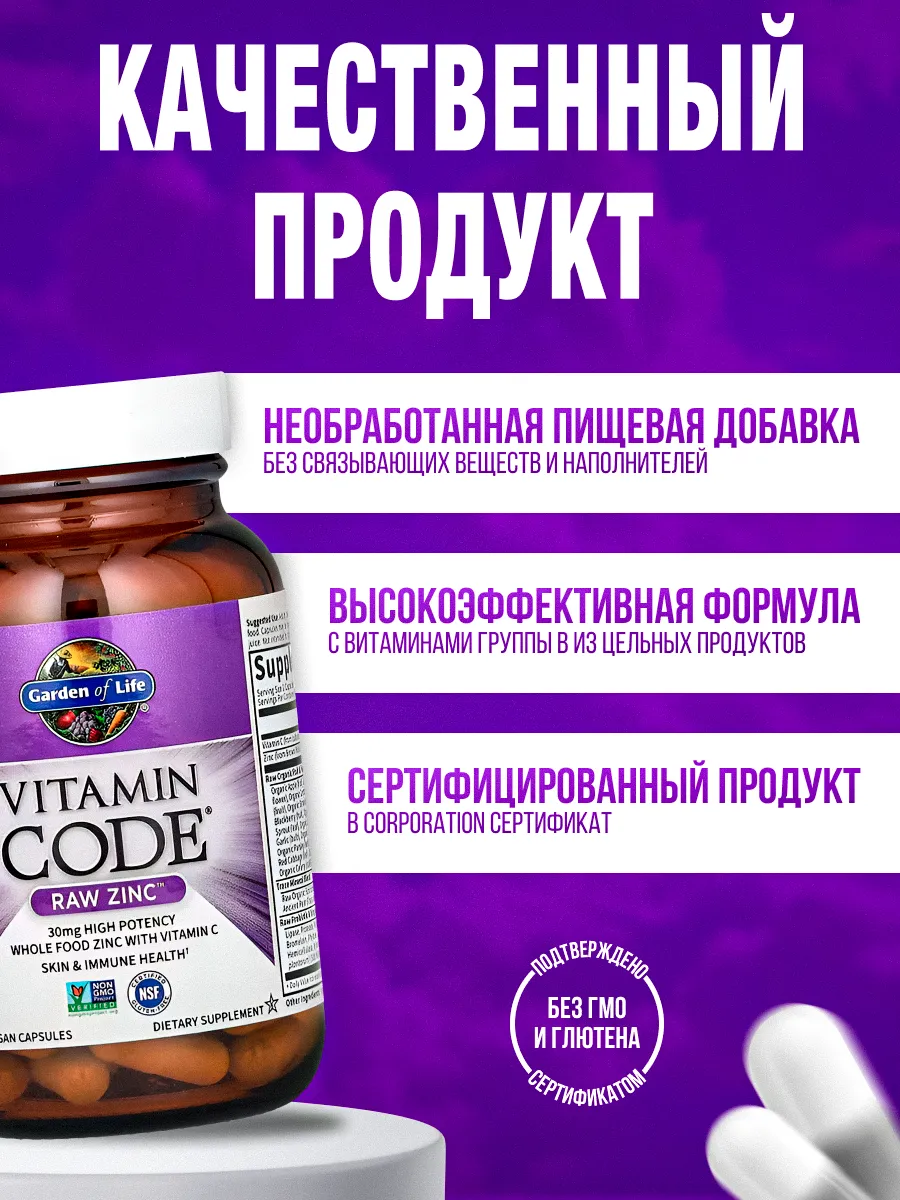 Основные преимущества Garden of Life Vitamin Code RAW Zinc: