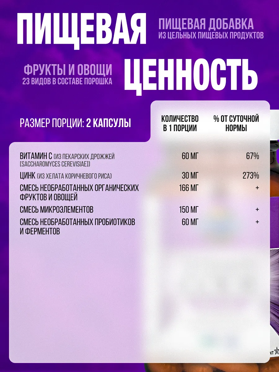Натуральный и сырой состав: Цинк и витамин C получены из органических цельных продуктов без термической обработки, что сохраняет их максимальную питательную ценность.