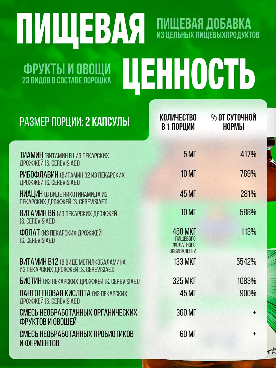 Сырой состав: Витамины получают из органических цельных продуктов без термической обработки, что сохраняет их питательную ценность.