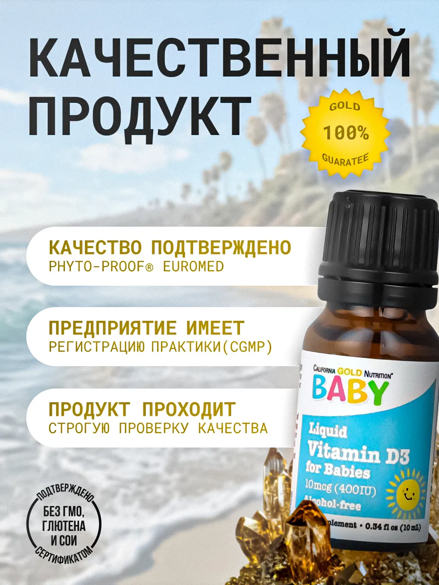 California Gold Nutrition Витамин D3 для детей — это жидкая форма витамина D3, разработанная специально для малышей, чтобы поддерживать здоровье костей, иммунную систему и общее развитие. Витамин D3 (холекальциферол) помогает организму усваивать кальций и фосфор, способствуя формированию крепких костей и зубов.